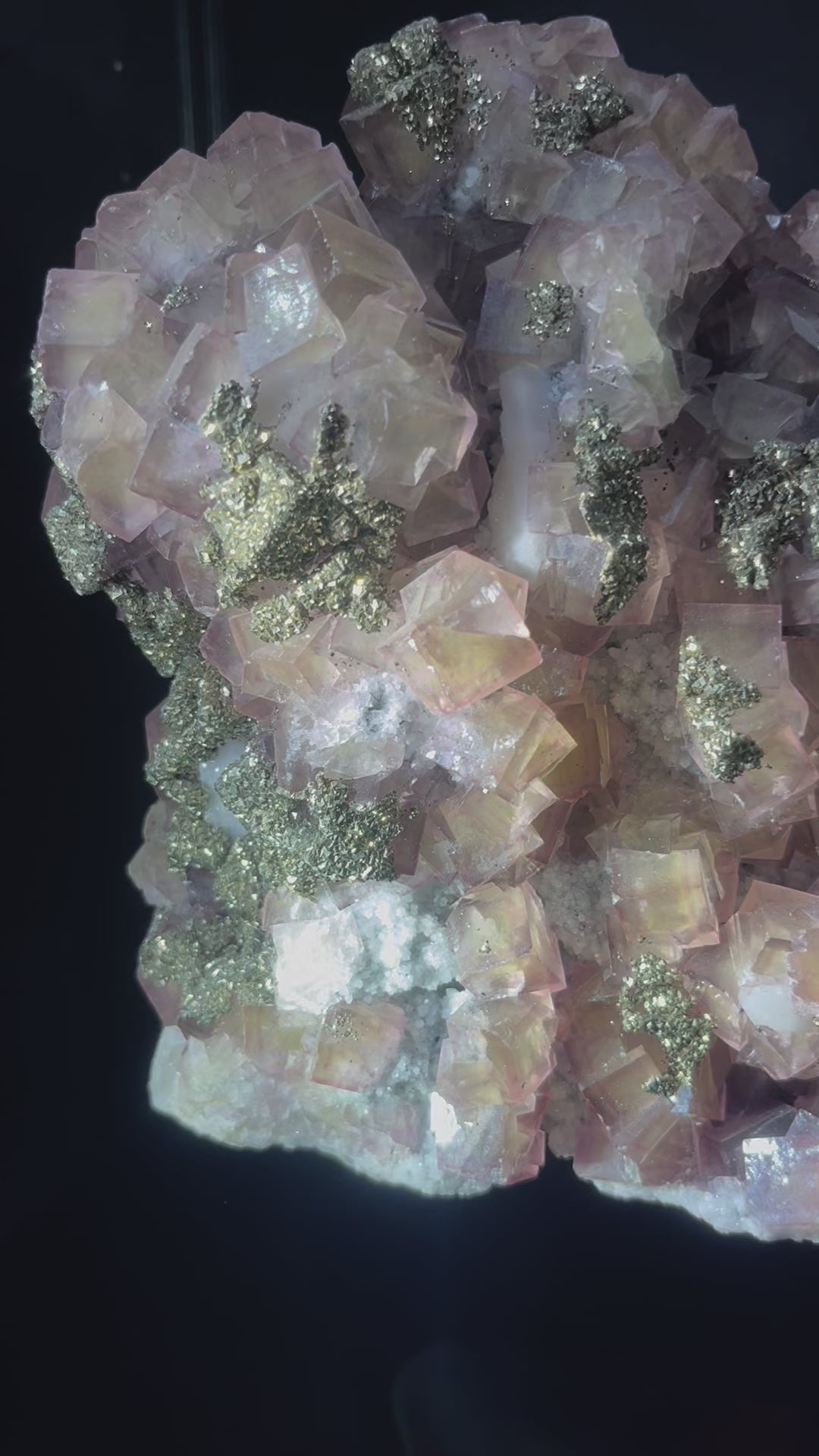 Amazing Fluorite and pyrite specimen, comes with custom stand for easy display