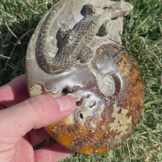 Lizard Carving on Ammonite