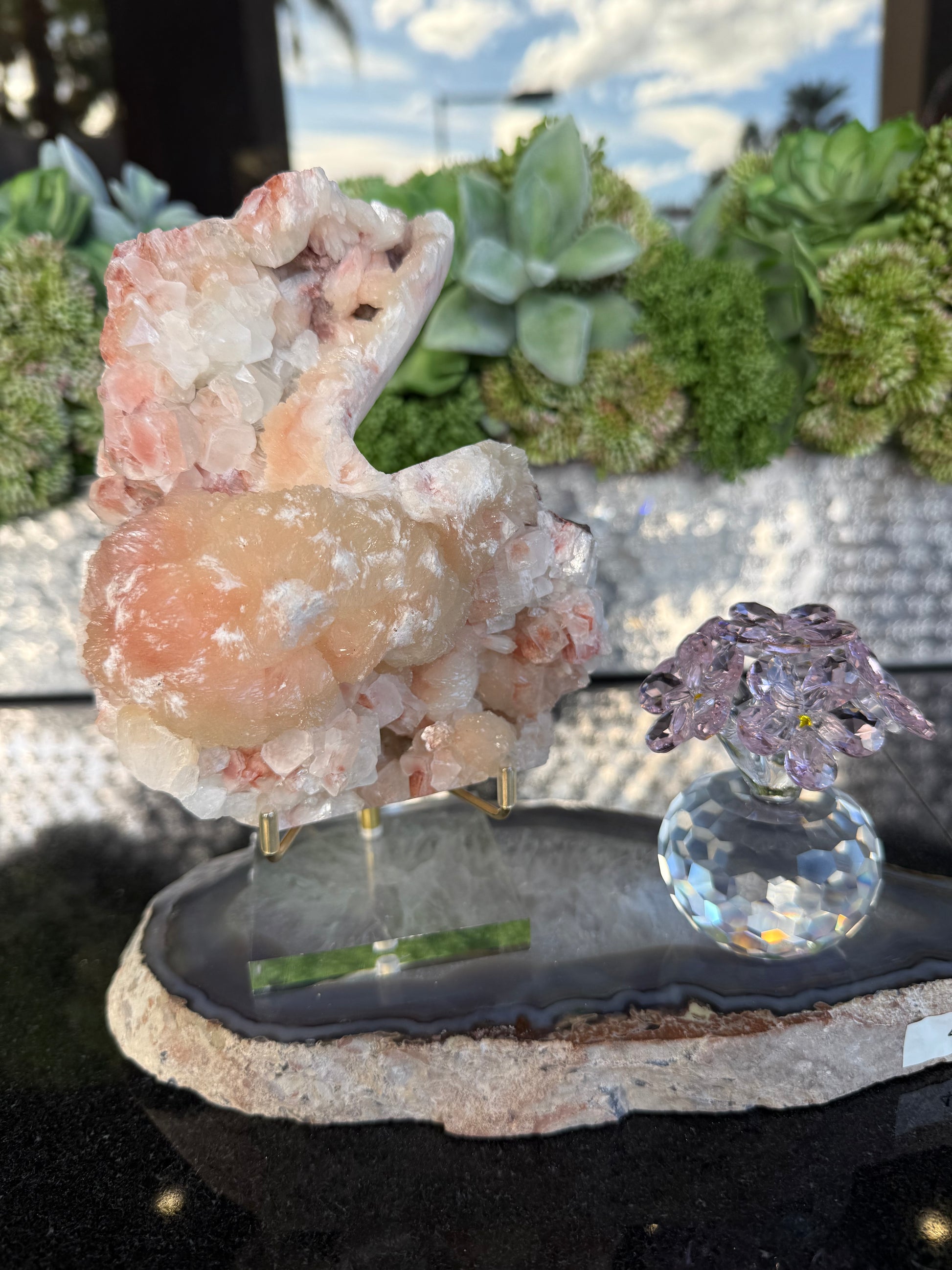 Designed to bring sophistication and serenity to any setting, this display captures the harmony between natural earth energy and refined artistry. Perfect for shelves, desks, or meditation spaces, it serves as both a decorative statement piece and a reminder of balance and beauty in your environment.